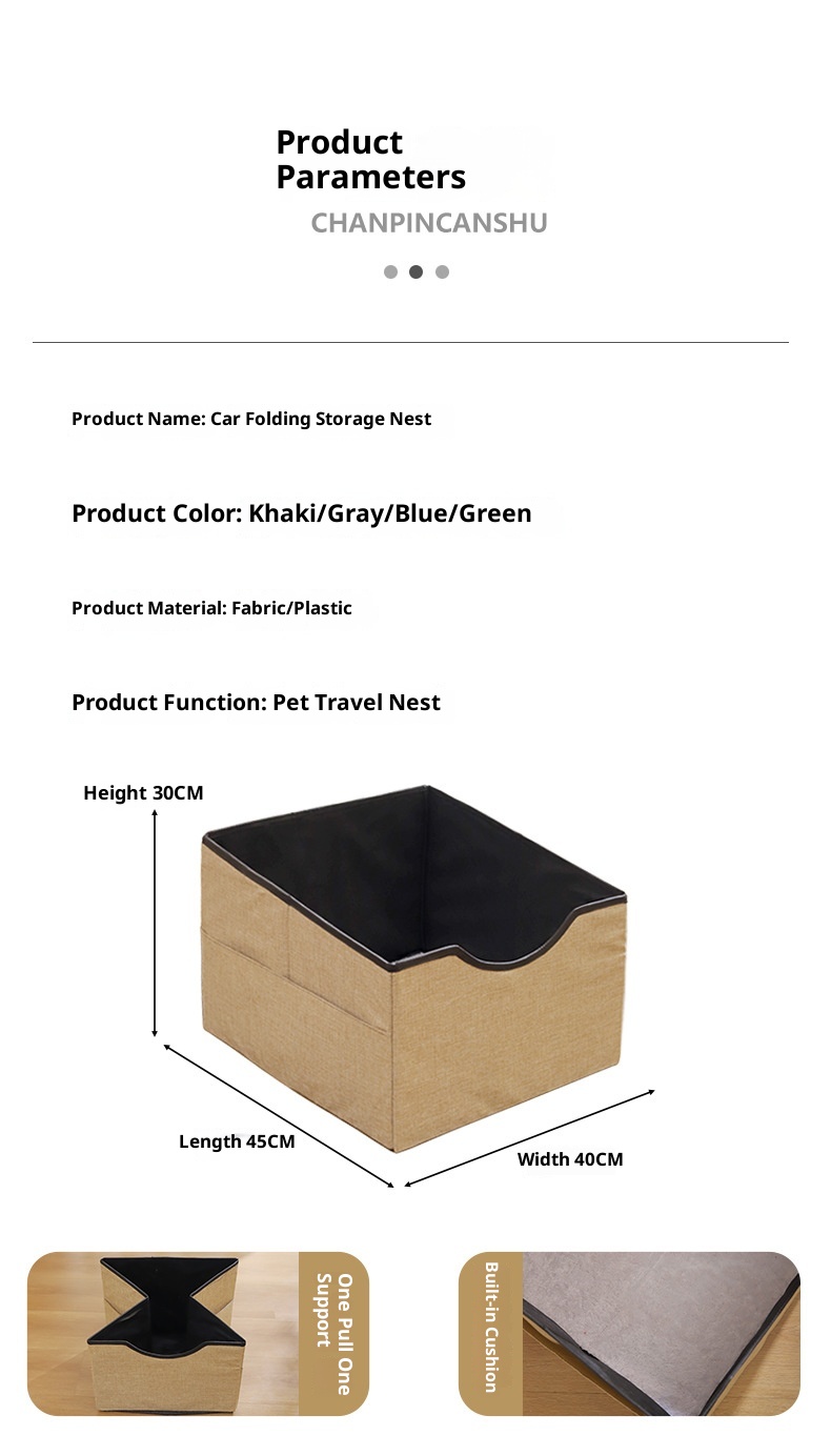 Product information:Specifications: Individually packaged Color: Gray, Khaki, Blue, Cyan Material: Oxford Fabric Applicable Object: Cat Category: Pet Bed, CagePacking list: Pet Car Nest*1Product Image: