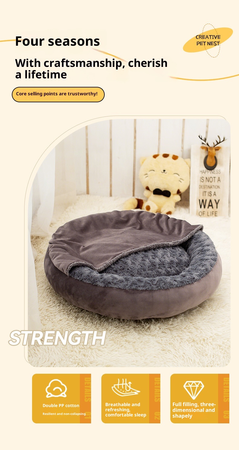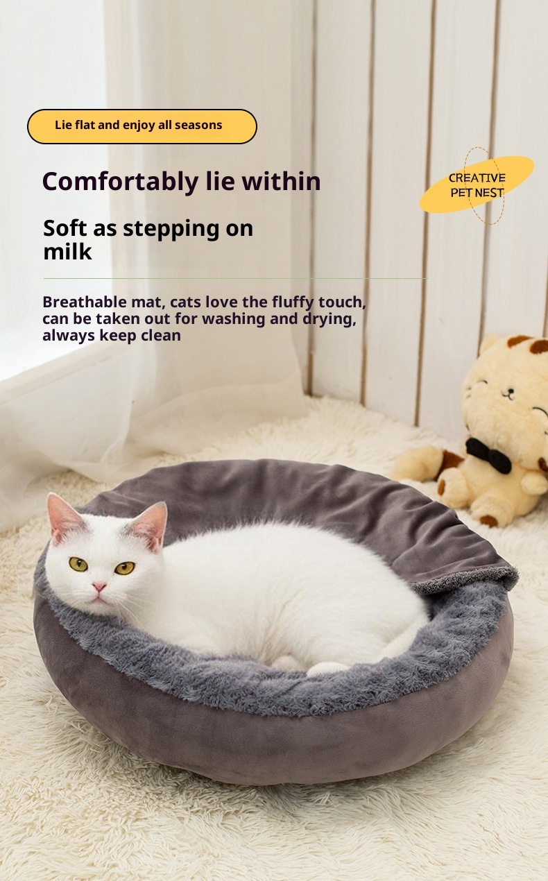 Four Seasons Pet Cushion Mat Round Large Cat Bed Kennel Thickened Flannel