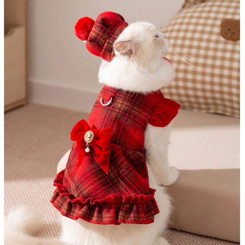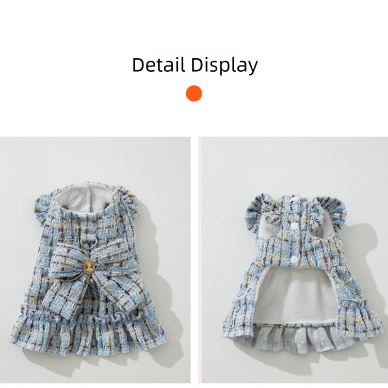 Product Description- Super warm lining: The soft wool inside can absorb heat, keeping small/medium-sized dogs warm (suitable for walking in autumn and winter or snuggling indoors).- Dress: Ruffled hem, a large decorative bow (with a pearl accent), and a metal D-ring (for belt connection).- Matching cap: Knitted borderless cap with...