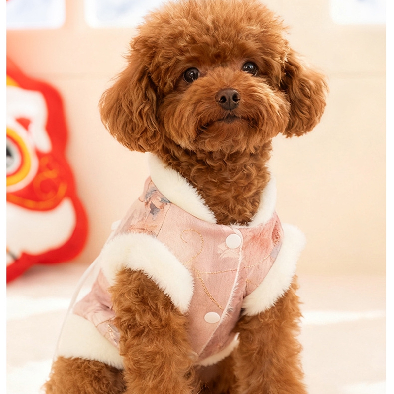 New Chinese-style Pet Clothing For Autumn And Winter With Fleece For Warmth, A Stretchable Bichon Frise Vest, And New Year Dog Clothes