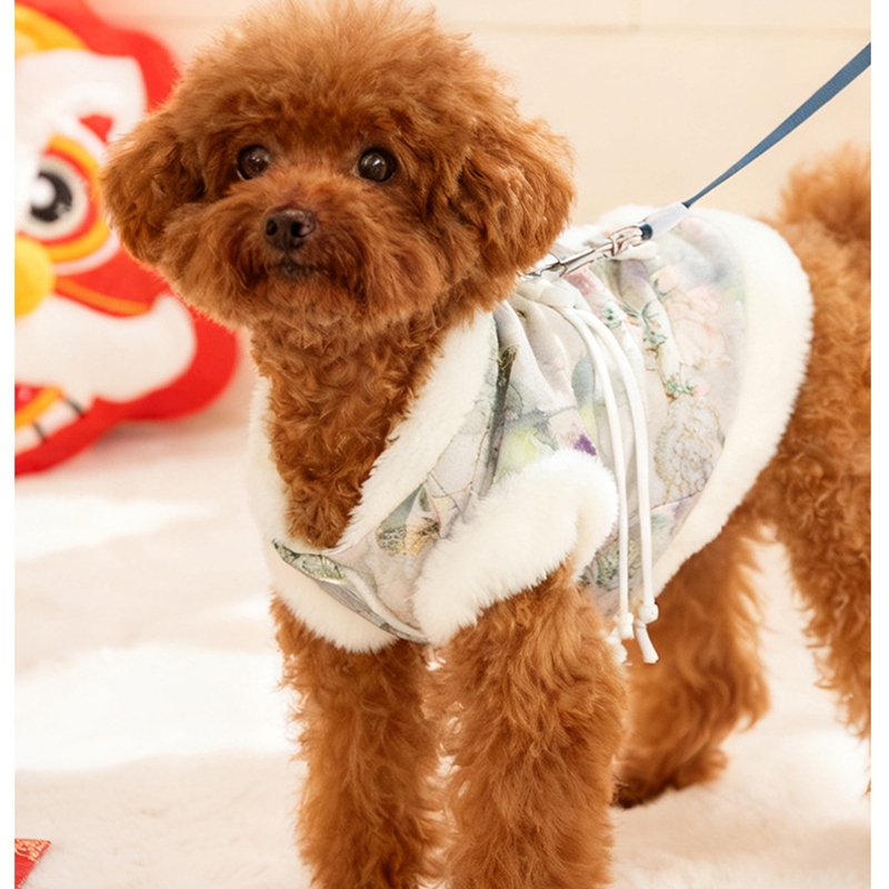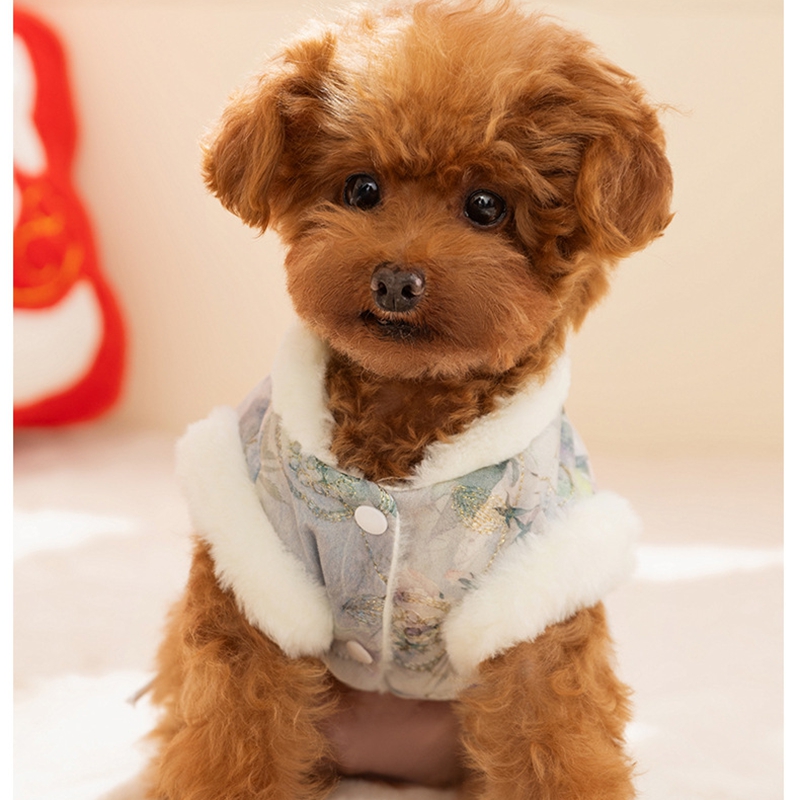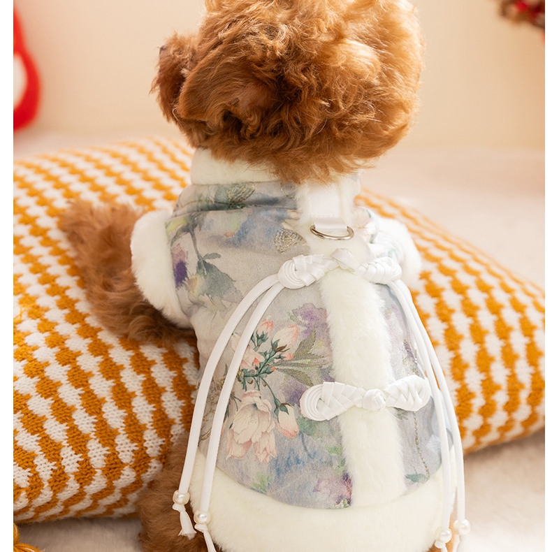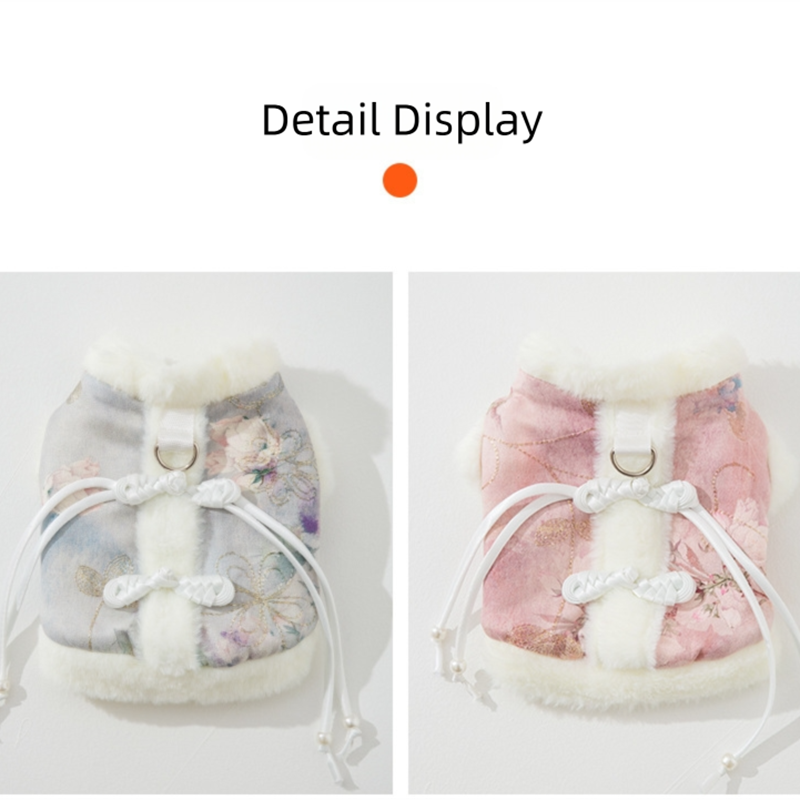 Product DescriptionTraditional Chinese winter clothing for petsDress up your furry friend with the festive charm of this elegant winter vest, inspired by classic Chinese clothing!- Unique and comfortable design: Soft, fluffy faux fur decoration (collar/hem) for warmth + delicate floral/patterned fabric (available in pink or blue tones), with subtle embroidery...