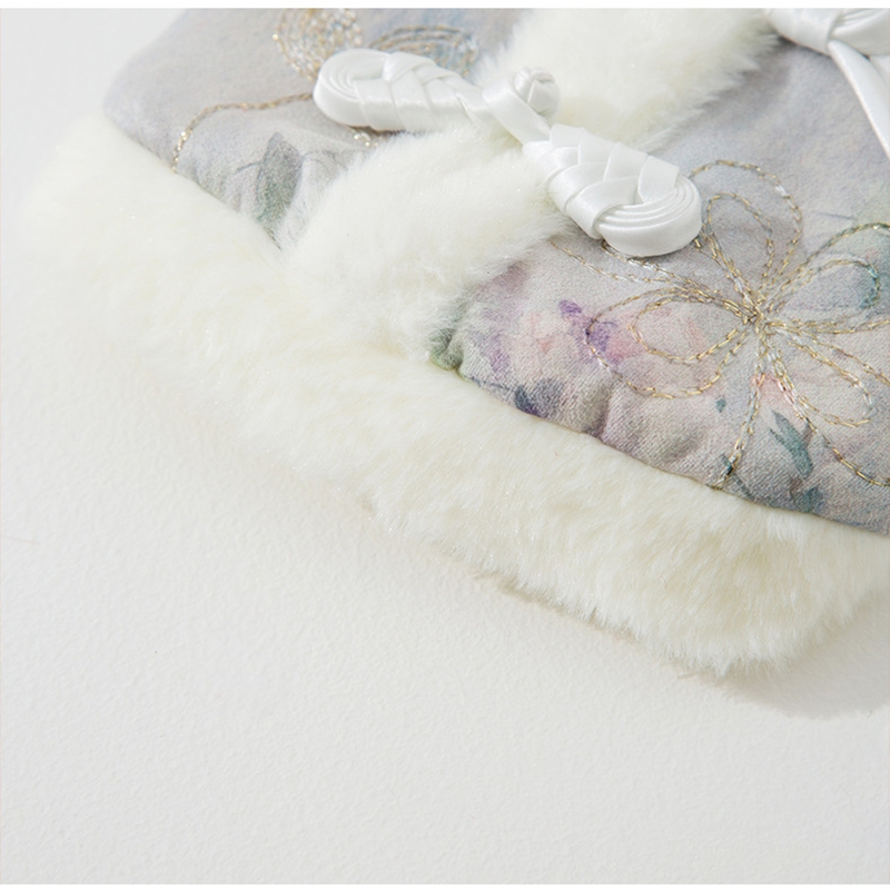 - Unique and comfortable design: Soft, fluffy faux fur decoration (collar/hem) for warmth + delicate floral/patterned fabric (available in pink or blue tones), with subtle embroidery details.