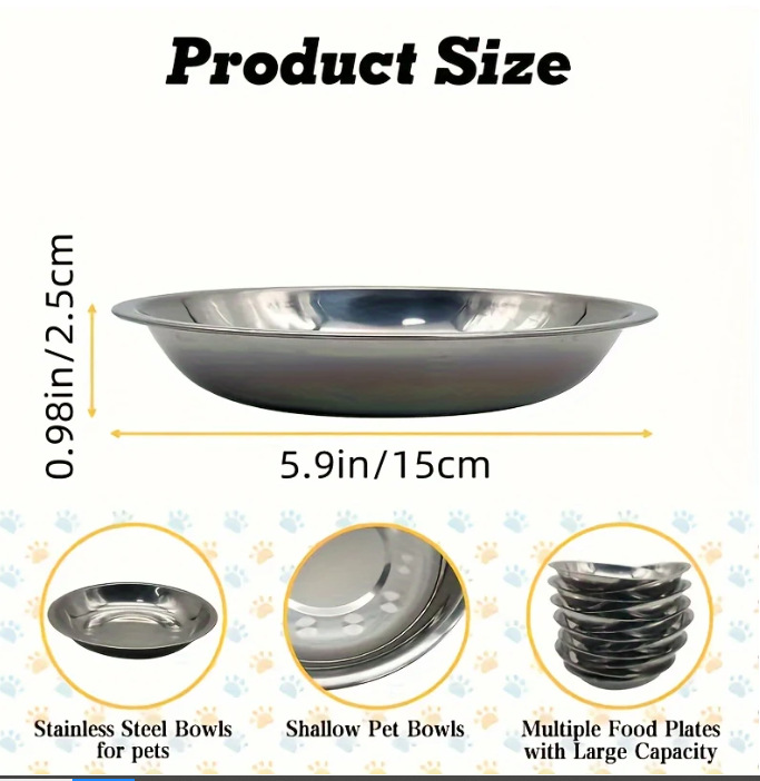 Product information:Quantity: multiple combinations Specifications: 15cm Pet Bowl, 16cm Pet Plate, 14CM non-magnetic Pet Plate Material: Stainless steel Applicable object: Cat Category: Pet tableware Packing list: Pet bowls*1pcs Product Image: