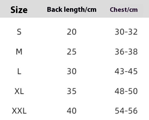 Size: S [back length 20cm/suitable for 1.00 kg-1.50kg],M [back length 25cm/suitable for 1.50 kg-3.00kg],L [back length 30cm/suitable for 3.00 kg-4.50kg]],XL [back length 35cm/suitable for 4.50 kg-6.50kg],XXL [back length 40cm/suitable for 6.50 kg-8.00kg]]