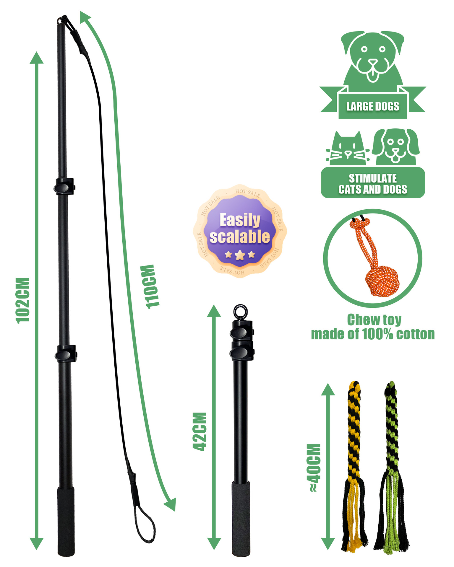 Color: 102cm black three-section (two bite ropes and one ball)